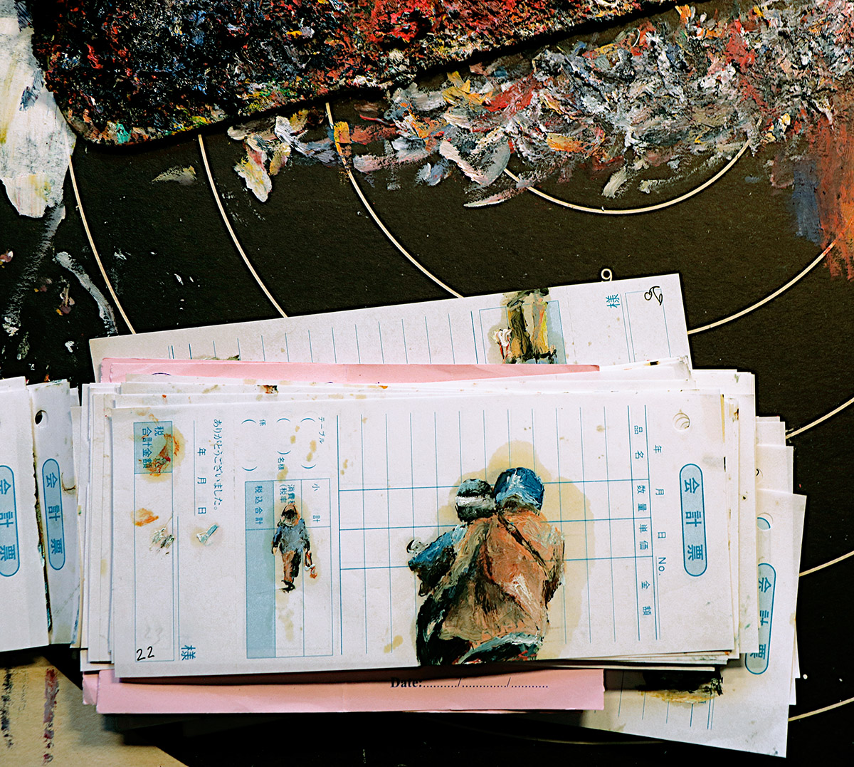 Le Cambodge peint est un film en papier réalisé sur les supports les plus précaires, parfois ramassés par terre. La surface est un argument essentiel des opérations plastiques ; elle est choisie fine et absorbante, la peinture à l’huile imprégnant les fibres jusqu’à diffuser des auréoles de graisse. Le travail se sépare cependant de A Movie en délaissant toute référence explicite au cinéma. Partiellement réalisé sur place au Cambodge à partir d’une observation de la rue, il produit une représentation du monde contemporain où la peinture transforme la banalité du quotidien en une expérience visuelle. L’animation développe un double mouvement : celui des figures qui traversent le champ dans la continuité de leur déplacement dans l’espace, celui des bouts de papier, qui deviennent des photogrammes indépendants imprimant leur propre dynamique suivant l’intensité ou la faiblesse des contrastes.